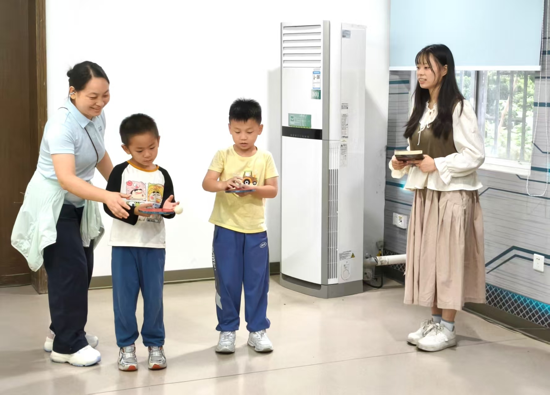 运动实践环节作为活动的“欢乐引擎”,瞬间点燃了全场参与热情。小朋友们在馆员的带领下,沉浸式体验太极拳与八段锦的韵律之美,在舒缓的节奏中实现身心放松;继而通过乒乓球颠球、托球接力及踢毽子挑战等趣味项目,掌握基础运动技能。现场,家长们或化身“运动教练”耐心指导,或作为“最佳拍档”亲密互动,温馨的亲子协作场景贯穿始终。