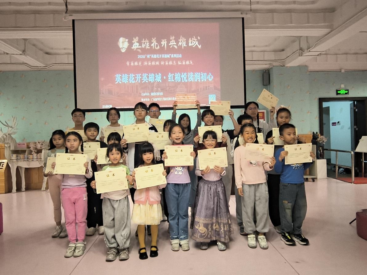 英雄花开薪火传,红色经典润童心。为传承红色基因,厚植青少年家国情怀,越秀区图书馆主办、广东新华发行集团荟阅文化传播有限公司协办的“英雄花开英雄城·红棉悦读润初心”红色阅读活动,于2026年3月21日在越秀区少年儿童图书馆圆满落幕。多名青少年儿童齐聚一堂,共赴红色阅读之约,在品读经典、分享交流中感悟革命精神,诉说红色情怀。