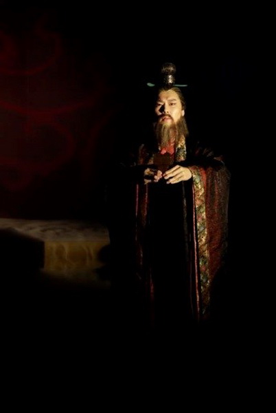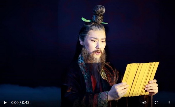 由广州话剧艺术中心演员孙博所饰的南越王赵佗,手捧香炉行祭拜仪式后,高声朗诵起目前岭南地区最早的文献《报文帝书》:“今陛下幸哀怜,复故号,通使汉如故,老夫死骨不腐,改号不敢为帝矣!”