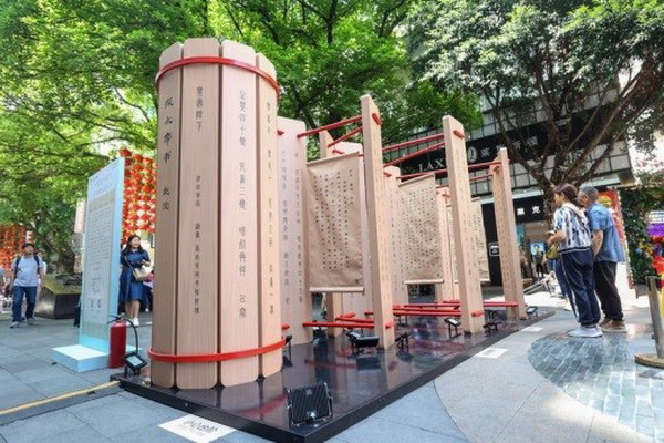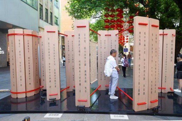 活动现场,市民聚集在各朝代装置展前积极参与互动活动,在集齐盖戳挑战中沉浸体验传统文化。各朝代装置工作人员,穿着相应服饰,与现场市民互动,吟诗对句,指引体验,增强活动代入感与趣味感。广州市新华书店的IP“嘟嘟”还将现身当代装置中,可爱、有趣的卡通形象吸引了不少市民拍照打卡,现场满载欢声笑语。