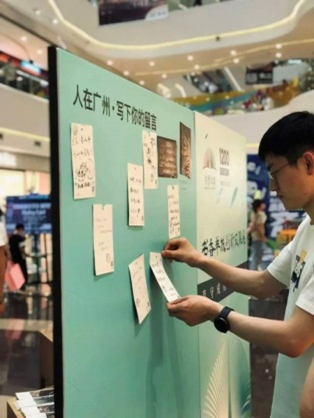 活动现场,市民聚集在各朝代装置展前积极参与互动活动,在集齐盖戳挑战中沉浸体验传统文化。各朝代装置工作人员,穿着相应服饰,与现场市民互动,吟诗对句,指引体验,增强活动代入感与趣味感。广州市新华书店的IP“嘟嘟”还将现身当代装置中,可爱、有趣的卡通形象吸引了不少市民拍照打卡,现场满载欢声笑语。