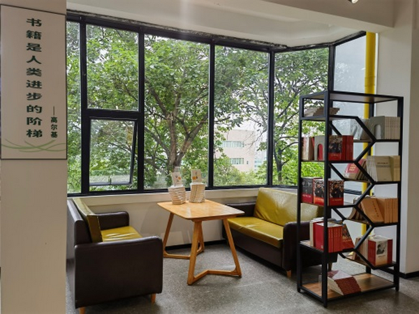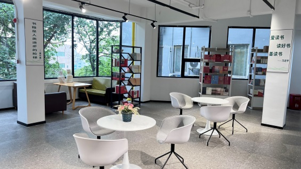 丰富的馆藏资源、智能化的自助设备、全覆盖的5G网络、休闲时尚的阅览环境,“越读吧·花果山小镇”兼具“外观美”与“内涵美”,正成为小镇企业员工和广大读者读书休闲、汲取文化滋养的“脑力加油站”。