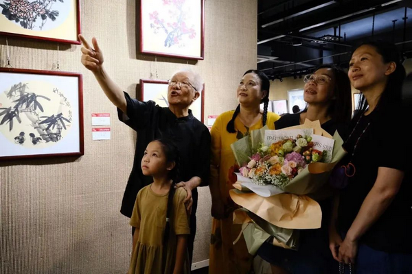 活动现场氛围热烈,和乐融融。前来进行观展的市民朋友下至天真稚气的小朋友,上至双鬓斑白的老者。他们在画作前驻足,听艺术家们面对面分享他们的作画心得,感受浓厚的艺术氛围。