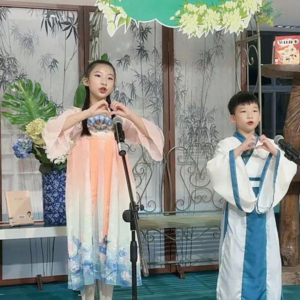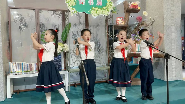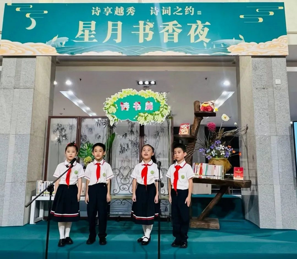 2023年9月23日晚上,在黄红曼老师的带领下,雅荷学子在“喜阅舞台”上诵读红色经典、中秋诗词,发出爱国之声,共赴 “阅秀书香路”,感受经典与潮流碰撞的魅力。