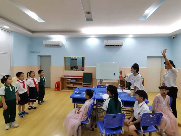 从接到任务,排练到表演,仅一周时间。黄红曼老师带领着表演队的同学,利用放学后的时间全身心投入到排练中。林筱芮妈妈、边诗妍和边子骞妈妈、林煜皓妈妈等家长志愿者也踊跃参与日常排练和表演当天的化妆。家校同心,为当天的表演增彩添翼。