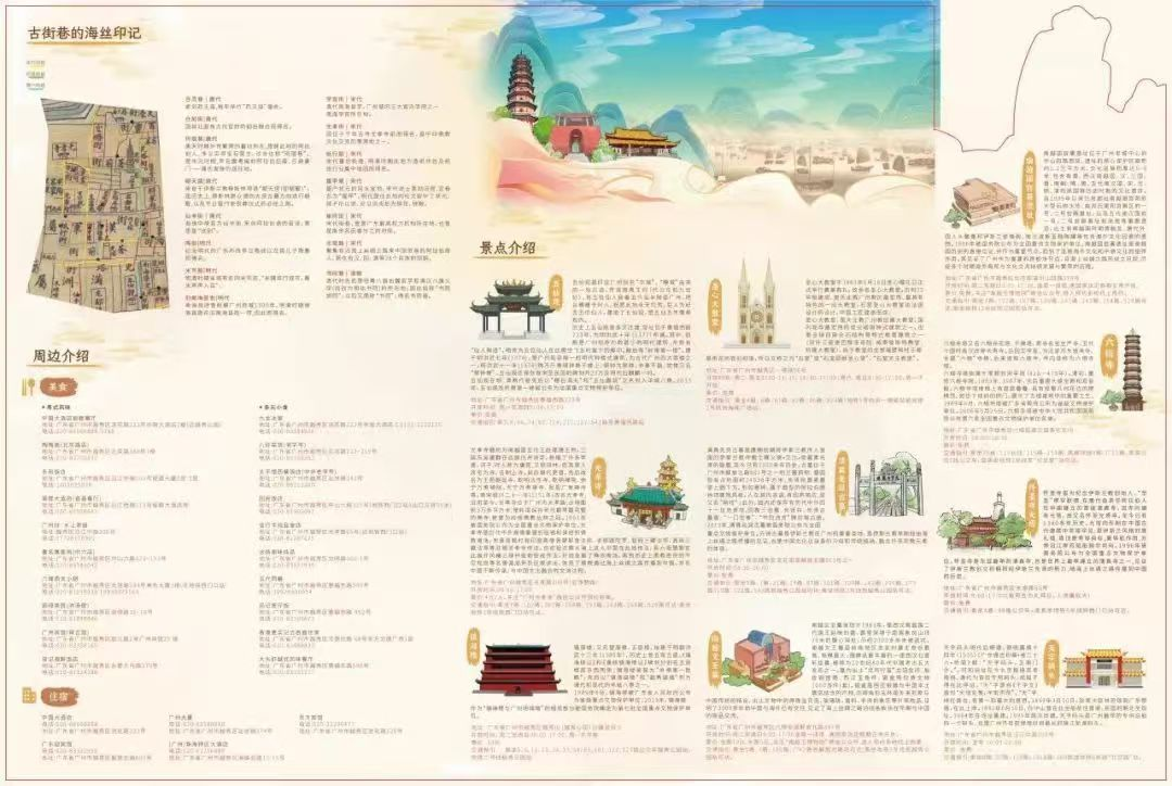 推出“穿越千年的海丝游径2.0”线路,挖掘越秀古街巷、美食和景点,发布光孝菩提、六榕花塔、古观仙风、纸间怀古、蕃坊记忆等海丝片区“海丝五景”。结合2024年中国同马来西亚建交50周年暨“中马友好年”开展“海上丝绸之路马来西亚研学营”,招募亲子家庭赴马来西亚马六甲开展研学。