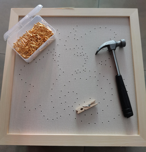 想要制作一幅漂亮的弦丝画,打好基础是关键......就是“砰砰砰”钉钉子啦!