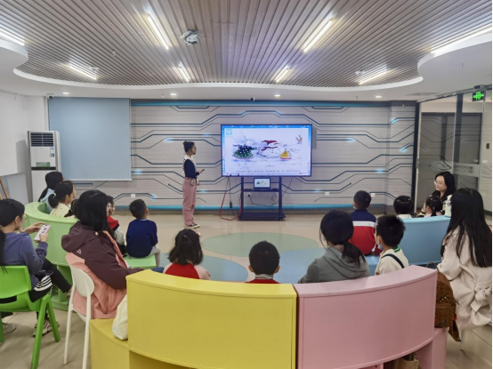 2023年12月2日上午,越图小读者相聚图书馆三楼数字馆,参加“喜阅吧”系列活动之“听阅读—雪孩子”活动。