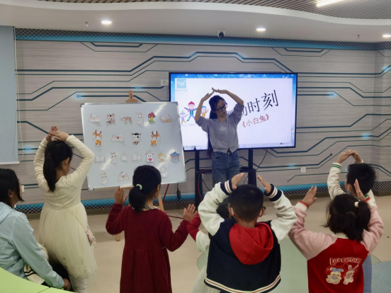 馆员朱老师教的舞蹈《小白兔》,小读者们都充满热情,参与其中。