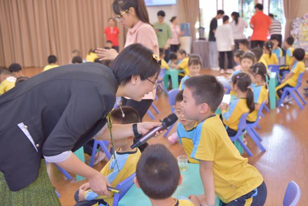 最受欢迎的环节莫过于“小小中医师”体验。孩子们分别品尝了紫苏饮、紫苏浸梅子等美食,并动手尝试将柠檬汁挤入紫苏水中,感受两者碰撞带来颜色变化的神奇和口感的变化,制作过程中,孩子们兴奋地观察着紫苏水的颜色,纷纷表示“太神奇了!”,刘宇护士长鼓励小朋友们回家后也能尝试在家长的帮助下用紫苏制作健康饮品,让中医药文化融入日常生活。