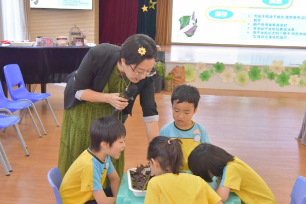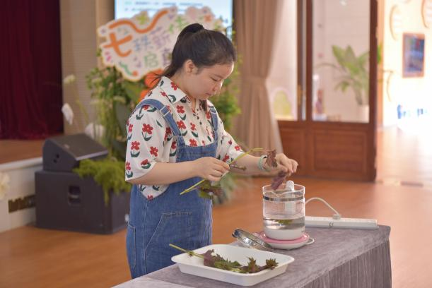 通过图片和实物,孩子们认识了紫苏的叶片、梗和种子。刘宇护士长用简单易懂的语言解释:“紫苏叶能驱寒解毒,梗能理气止痛,种子还能润肠通便哦!”现场还设置了小问答:“紫苏不能和什么一起吃?”一位小朋友大声回答:“鲤鱼!”赢得了一片掌声。