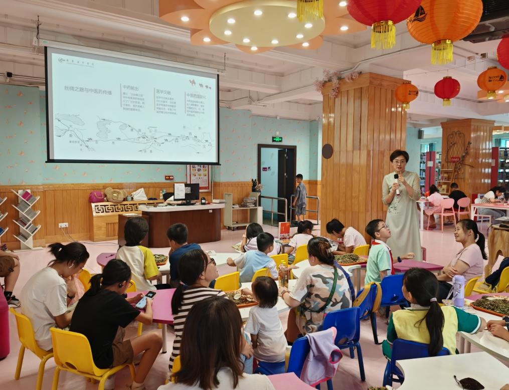 活动当日,亲子家庭齐聚一堂,在广东省中医院中医经典科护士长刘宇老师的引领下,开启一场融海丝文脉于其间,兼具知识与趣味的养生文化之旅。刘宇老师结合自身丰富的中医护理经验,以秋季节气养生为脉络,从“秋燥”的中医机理切入,细致阐释秋季药膳调护、作息节律、运动健身等实用方法,将可落地的日常养生窍门娓娓道来,让家长与孩子皆能轻松领会、学以致用。