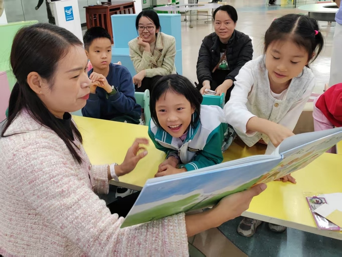 活动由广州市图画书阅读金牌推广人、诗社创办人、铁一小学陈文怡老师主讲,用一本“清风徐徐”的绘本,把孩子们带进绿色阅读和诗歌的世界。