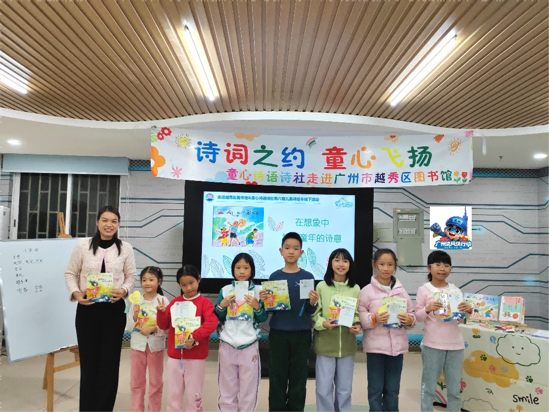 在广州市“扫黄打非”办公室、广州市文化广电旅游局、越秀区“扫黄打非”办公室的指导下,11月29日下午,越秀区图书馆、越秀区铁一小学童心诗语诗社联合举办了“清风侠”趣课堂之“诗词之约 童心飞扬”阅读推广活动,受到小朋友和家长的热烈欢迎。