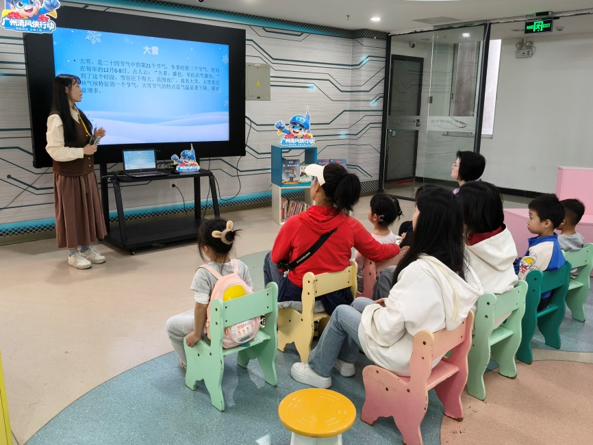在广州市“扫黄打非”办公室、广州市文化广电旅游局、越秀区“扫黄打非”办公室的指导下,越秀区图书馆聚焦“清风侠悦读行”重点活动,将节气文化、绿色阅读与护苗理念深度融合,于12月6日,在三楼绘本馆为读者带来了一场兼具阅读温度与文化厚度的“清风侠”趣课堂之“听·阅读——《大雪》绘本分享”活动。通过“传统文化+绿色阅读+趣味运动”的创新形式,让护苗理念转化为可感可知可及的沉浸式体验。