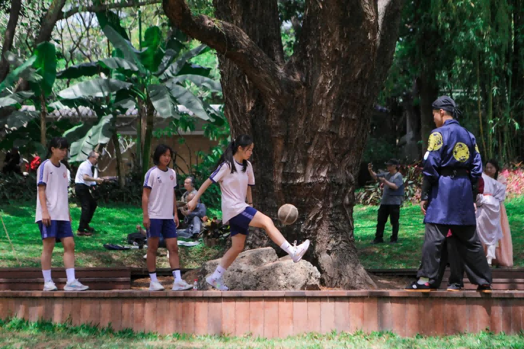 “喜迎全运·国潮蹴鞠赛”点燃全运激情,特别邀请十五运会和残特奥会广州赛区执委会指导,广州市足球协会、广州市第七中学实验学校、广州市第七中学女足队员加入,开展白打、对颠、友谊对抗赛,将现代足球的技巧与传统蹴鞠的规则相结合,充分展现广州体育精神和越秀学子精神风貌,让千年蹴鞠走出典籍、走进生活,让世界看见中国足球的根脉与新生。