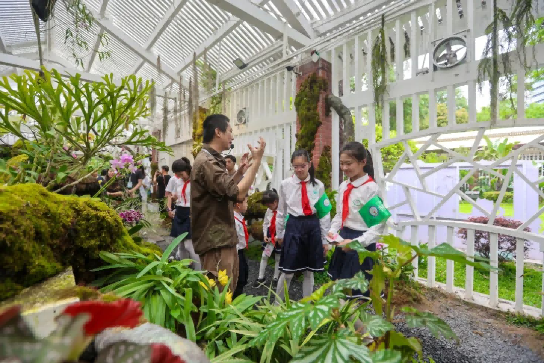 “兰缘畅学——兰花王国时空穿梭记”研学活动以“公园为核、学校为基、社区为网”生态教育体系为支撑,依托广州兰圃丰富的兰花资源和专业的研学场景,提供真实的自然观察与科学探索平台,带领青少年响应“绿美越秀”号召,穿越兰花世界,感受自然与文化的交融之美。