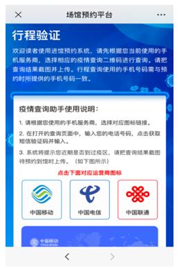 ④个人近期行程获取方式:点击“上传说明”后,选择本人手机对应运营商,输入手机号后(应与预约的手机号保持一致),即可显示个人近期行程。注意对行程进行截图保存。