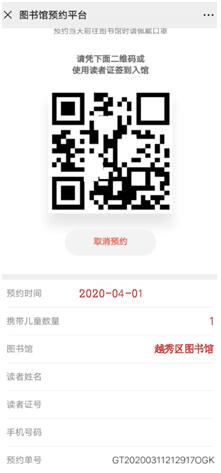(4)在图书馆预约平台携带儿童项,选了人数“1”,预约成功读者可带1名14岁以下小孩入馆。