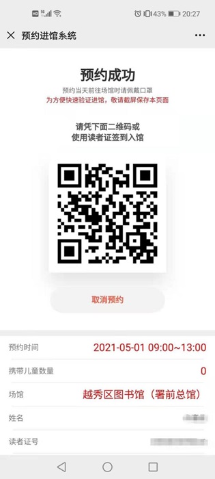 2、到馆前,请读者准备好预约码以及穗康码(或粤康码)。