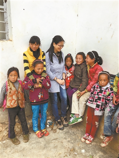 朱敏和大凉山孩子们在一起。