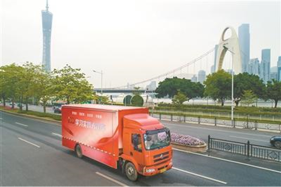 4月27日,由市委组织部、市委宣传部、市文明办主办,广州日报社承办的全国首辆结合党史学习和为民服务的主题专车——学习实践大篷车正式发车,一场融LED户外展演、立式显示一体机、AR+VR沉浸式参与于一体的“移动智慧广州党建文化体验展”从此日夜兼程,载着学习宣讲大讲台、为民服务大平台、红色经典大看台、专题展览大展台、知识普及大擂台等5大“台”开进街头巷尾、田间地头,“红”动广州。