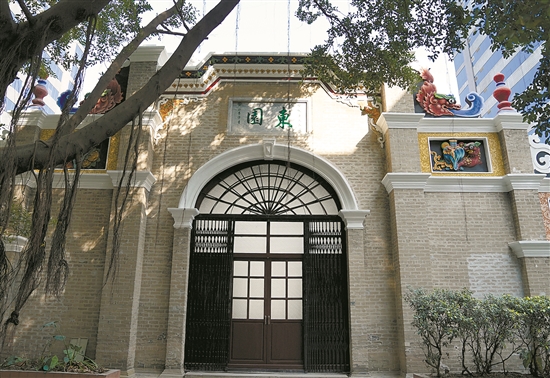 东园门楼位于挹翠路33号,是曾经的东园正门。记者看到,门楼由红砖砌筑,是中西合璧风格,正中为拱门设计,上方嵌有行楷阴刻“东园”二字的石额,两侧石额的位置装饰有灰塑动物、卷草、连珠纹等图案。由于深藏巷内,普通市民难觅其踪,东园门楼仍保留着较完好外观。