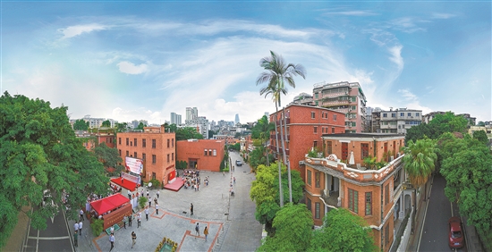 中共三大会址纪念馆所在的新河浦历史街区如今是广州文艺青年的“打卡胜地”。走访纪念馆的当天,记者看到了不少年轻人手持相机,一边观看历史建筑内的艺术展览,一边记录下沿途的风景。
