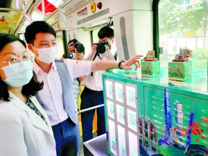 结合本次特展,广州博物馆与一汽巴士公司联手在公交10路线、B1路线上打造“红色公交·一车一党史”主题车厢,让市民群众通过公交这一流动的窗口进一步了解中国共产党百年奋斗历程和广州发展变化。其中,10路线途经广州解放纪念像、第一次全国劳动大会旧址等多个红色文化遗址,以“循红色足迹,看英雄广州”为主题,展示多个英雄广州红色故事。B1路线途经展现改革开放新形象城区,选用陆上公交“巨无霸”18米公交车为载体,以“奋进新时代,开启新征程”作为主题,展示广州“出新出彩”城市新面貌。