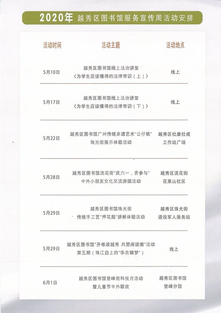 2020年越秀区图书馆服务宣传周活动安排